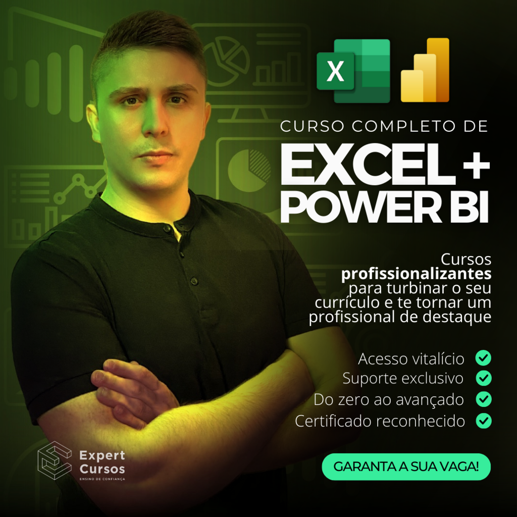 Quer ter aquele diferencial na sua empresa? Ou quer gerir melhor as informações do seu negócio? Não pense duas vezes e adquira já o curso de Excel + PowerBI da Expert Cursos
